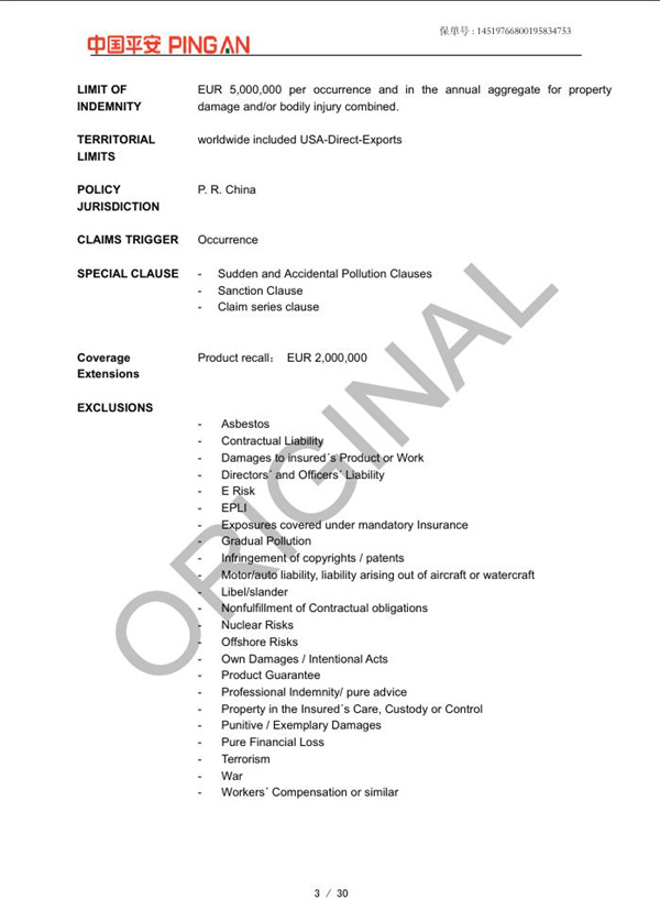全球范圍產(chǎn)品責任險