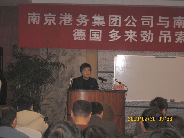 2月20日,春光明媚,梅花盛開。南京港務(wù)局集團(tuán)德國(guó)“多來(lái)勁”吊索具技術(shù)交流會(huì)在南京雙門樓賓館勝利召開。本次交流會(huì)邀請(qǐng)了南京港務(wù)局集團(tuán)公司工程技術(shù)部及其下屬的一公司、二公司、三公司、四公司、七公司、龍?zhí)陡奂b箱碼頭、港機(jī)廠等公司技術(shù)部經(jīng)理約50人參加。