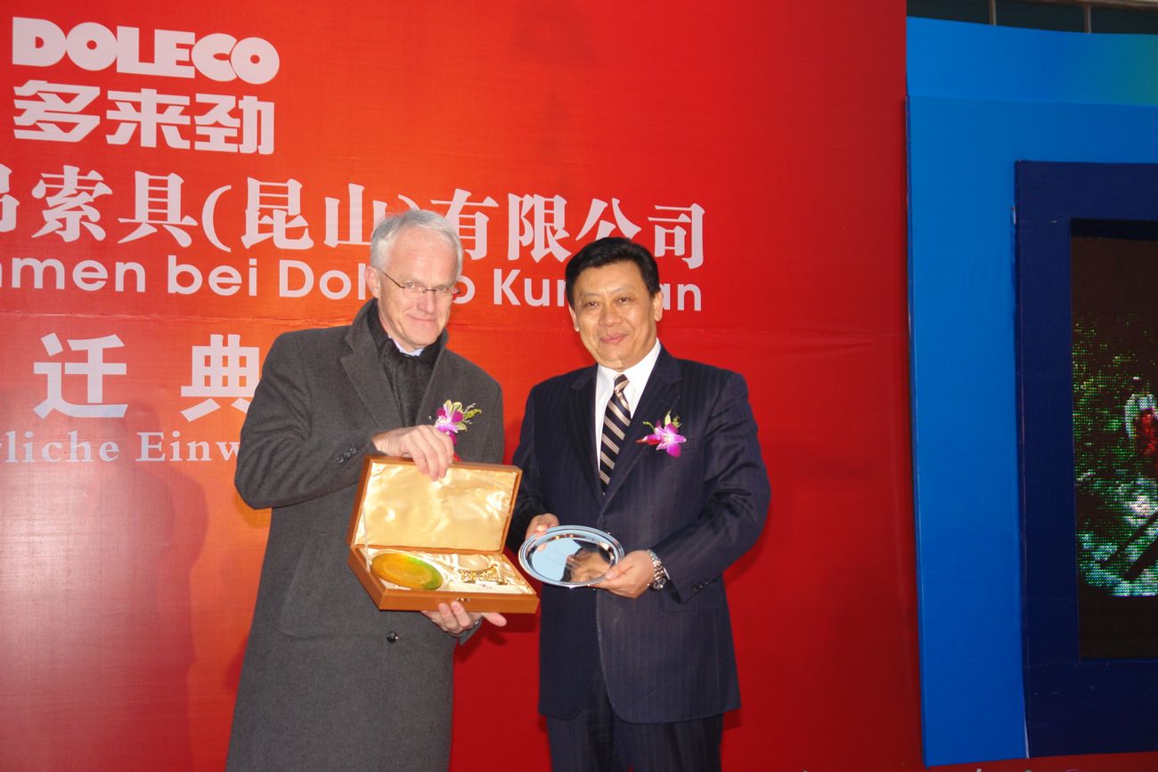 11月18日,德萊奇昆山公司新廠房喬遷典禮在新廠房院內(nèi)隆重舉行。德國北威州州長呂特格斯博士,德國多特蒙德商會會長、德萊奇集團董事長德萊奇先生,德國駐中國大使館大使施明賢博士,昆山市委副書記、市長管愛國出席喬遷典禮并為新廠房剪彩。出席慶典的有呂特格斯州長率領(lǐng)的德國政府、德國企業(yè)及媒體共95人的德國代表團,還有昆山市有關(guān)部門、新聞媒體、德萊奇公司的客戶、供應(yīng)商代表等中外嘉賓。慶典由上海電視臺英語頻道著名主持人徐珊小姐主持。