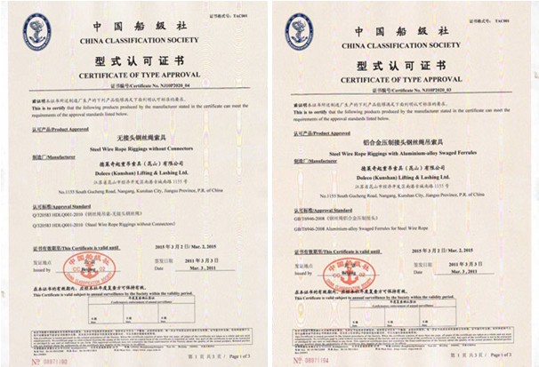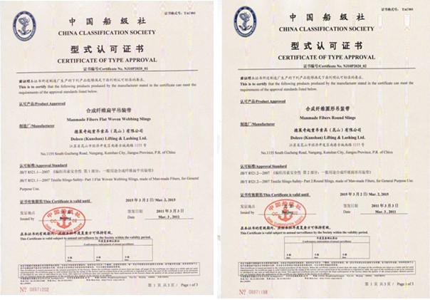 2011年3月3日,歐洲大的吊索具集團德萊奇集團旗下的德萊奇起重吊索具(昆山)公司,順利通過了中國船級社(工廠)型式認證,為其旗下產(chǎn)品 “多來勁“吊索具更好地進軍中國海事領(lǐng)域提供了有利條件,展示了該集團優(yōu)良的產(chǎn)品質(zhì)量及卓越的質(zhì)量保證體系。