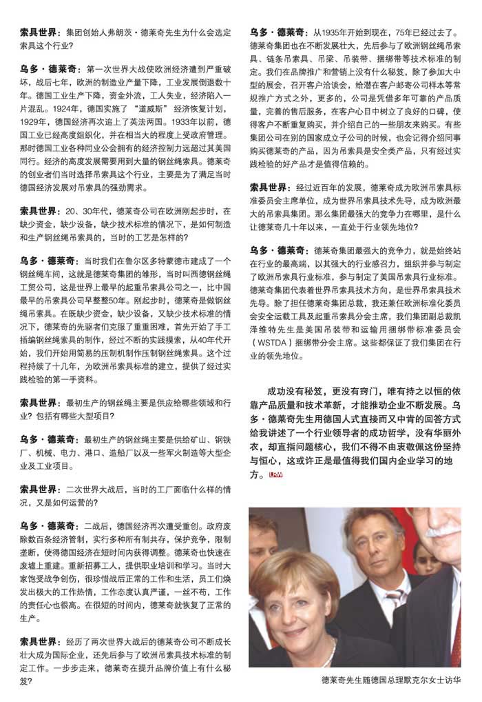 德萊奇集團總裁答《索具世界》記者問