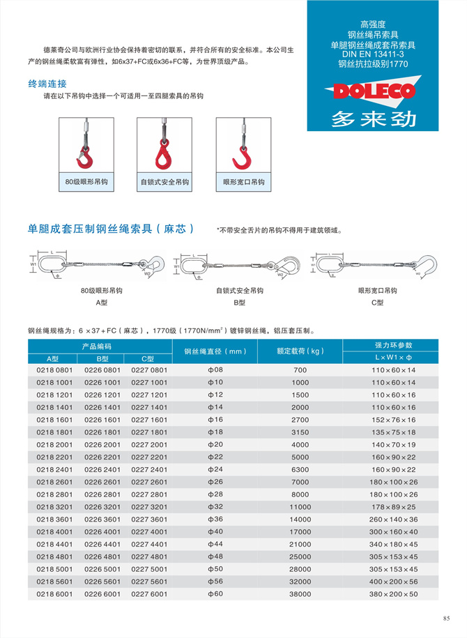 單腿鋼絲繩成套吊索具