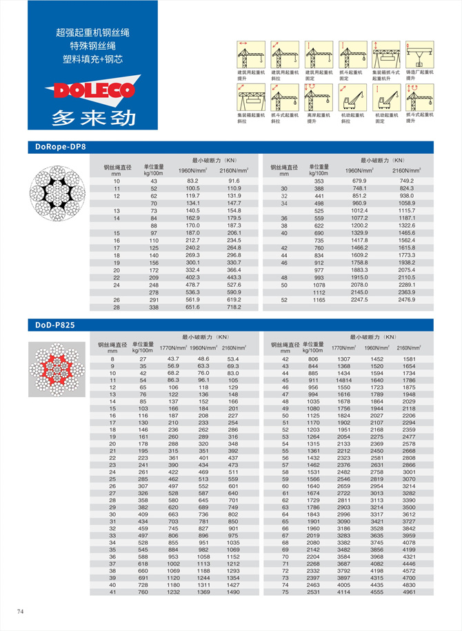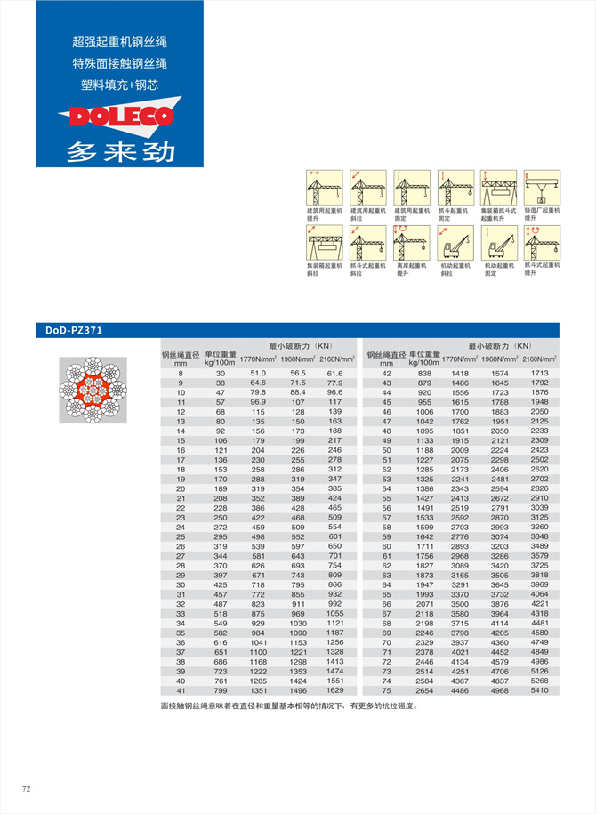 鋼絲繩介紹 / 鋼絲繩主要用途推薦表 / 索具用鋼絲繩 / 起重機(jī)用用鋼絲繩 / 起重機(jī)特殊不旋轉(zhuǎn)鋼絲繩 / 起重機(jī)鋼芯塑料填充鋼絲繩 / 不銹鋼鋼絲繩