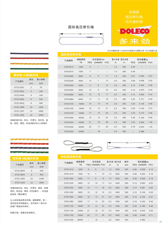 化纖編織繩索、高壓牽引繩